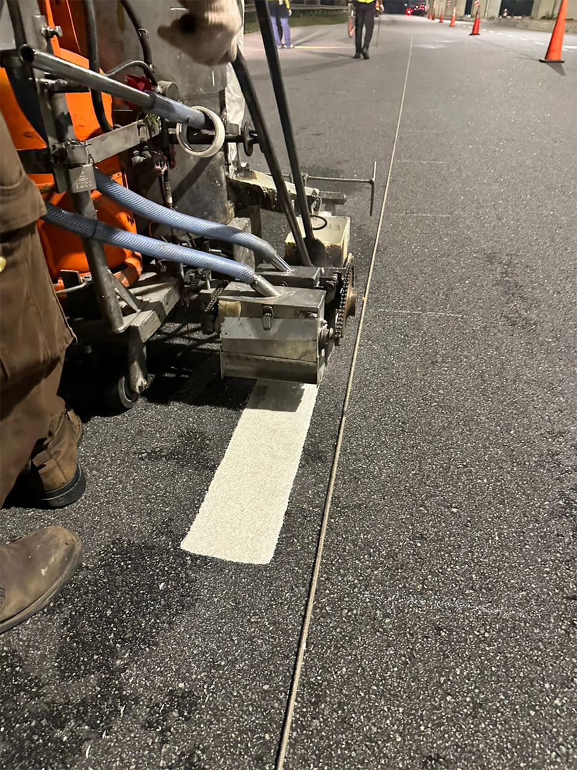 Road marking visibility at night can only be achieved by the addition of tiny solid glass beads during the application of thermoplastic line. Maximum reflectivity of individual glass beads occurs when the optimum degree of embedment is achieved. This happens when 60% of the bead is below the surface of the pavement marking materials.